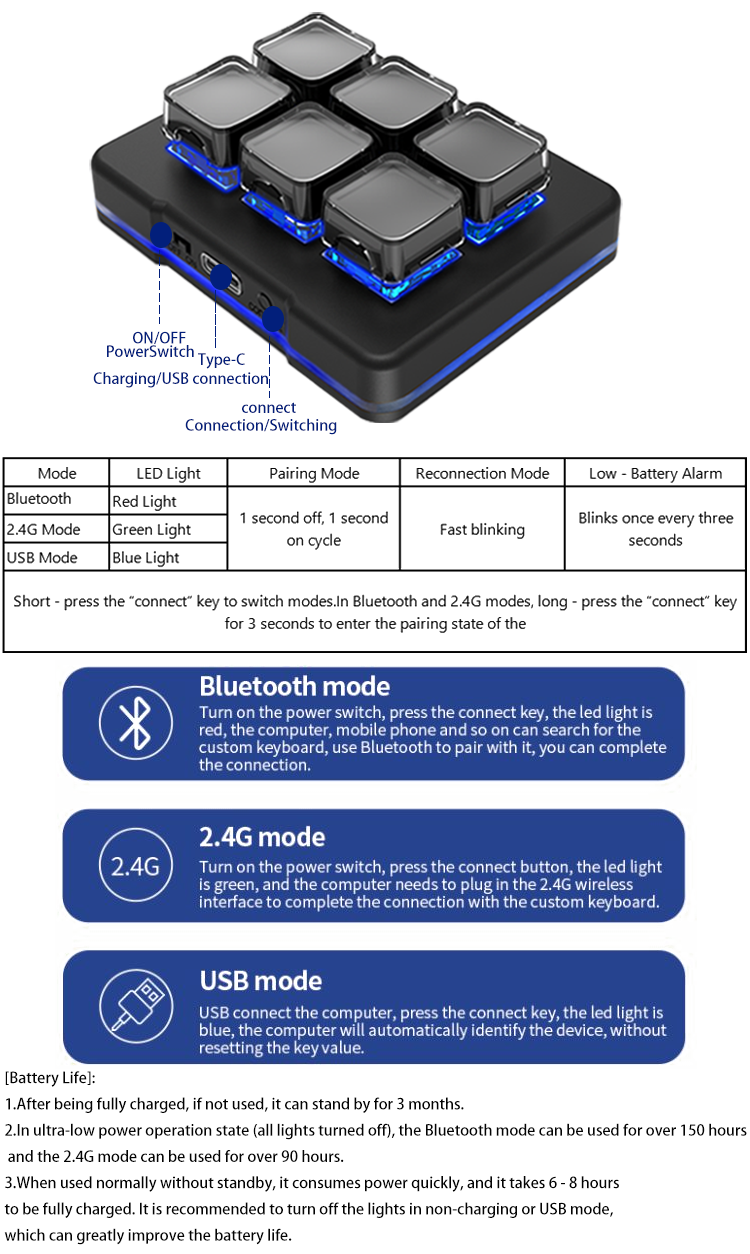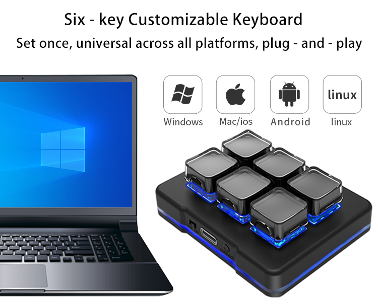 USB、2.4G、 Bluetooth six key mini custom keyboard, game key value setting macro programming, one click password copy and paste